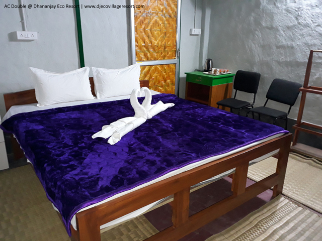 Rooms are made of mud finished inner walls with tribal motifs. It offers twin bed along with attached bath (Toilet and Bath) specially used for single/double or tour operator.